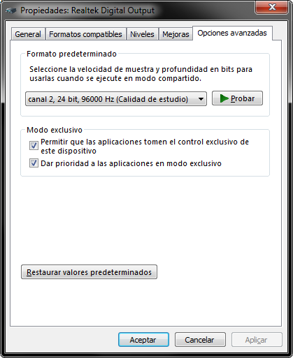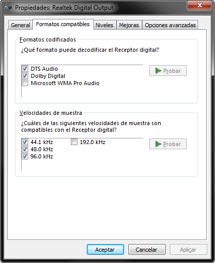 Me deja poner hasta 192khz pero si lo pongo así, los altavoces no se oyen, puesto que son 96/24...
