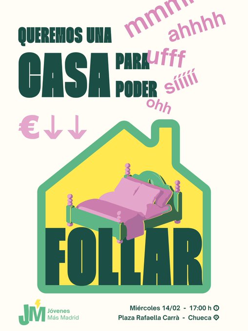 ¿Es solo cosa mía o es que a la descerebrada izquierda de Mas Madrid se le va cada vez mas la pinza?, porque me parece que caricaturizar a los jóvenes y banalizar sus problemas para acceder a una vivienda no es la mejor manera de aportar soluciones.