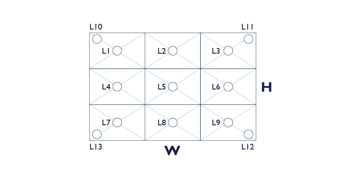 Brillo ANSI = (L1+L2+L3+L4+L5+L6+L7+L8+L9)/9 (lux) x A (m^2)