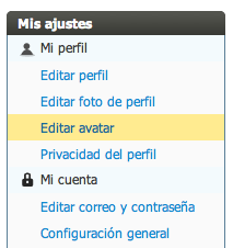Acceder a la sección "editar avatar", disponible a través de un enlace presente en la columna izquierda del panel de configuración.