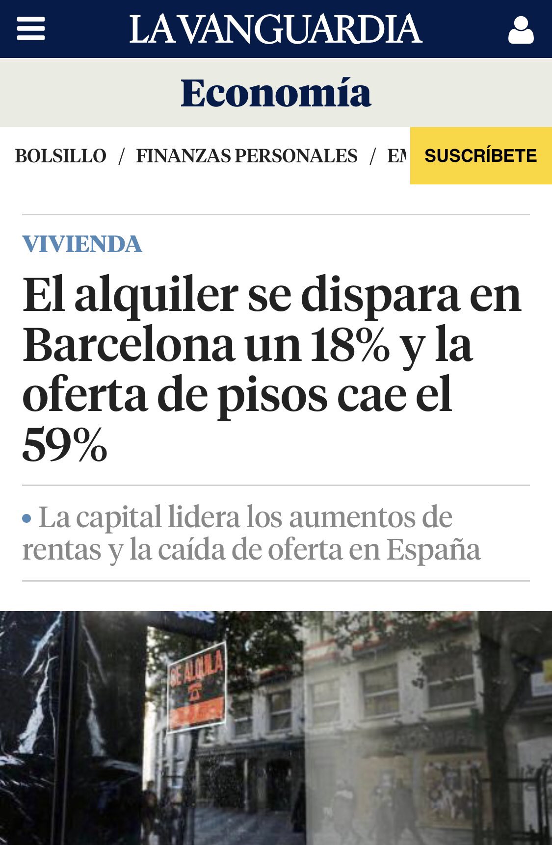 El alquiler se dispara en Barcelona un 18% y la oferta de pisos cae el 59%