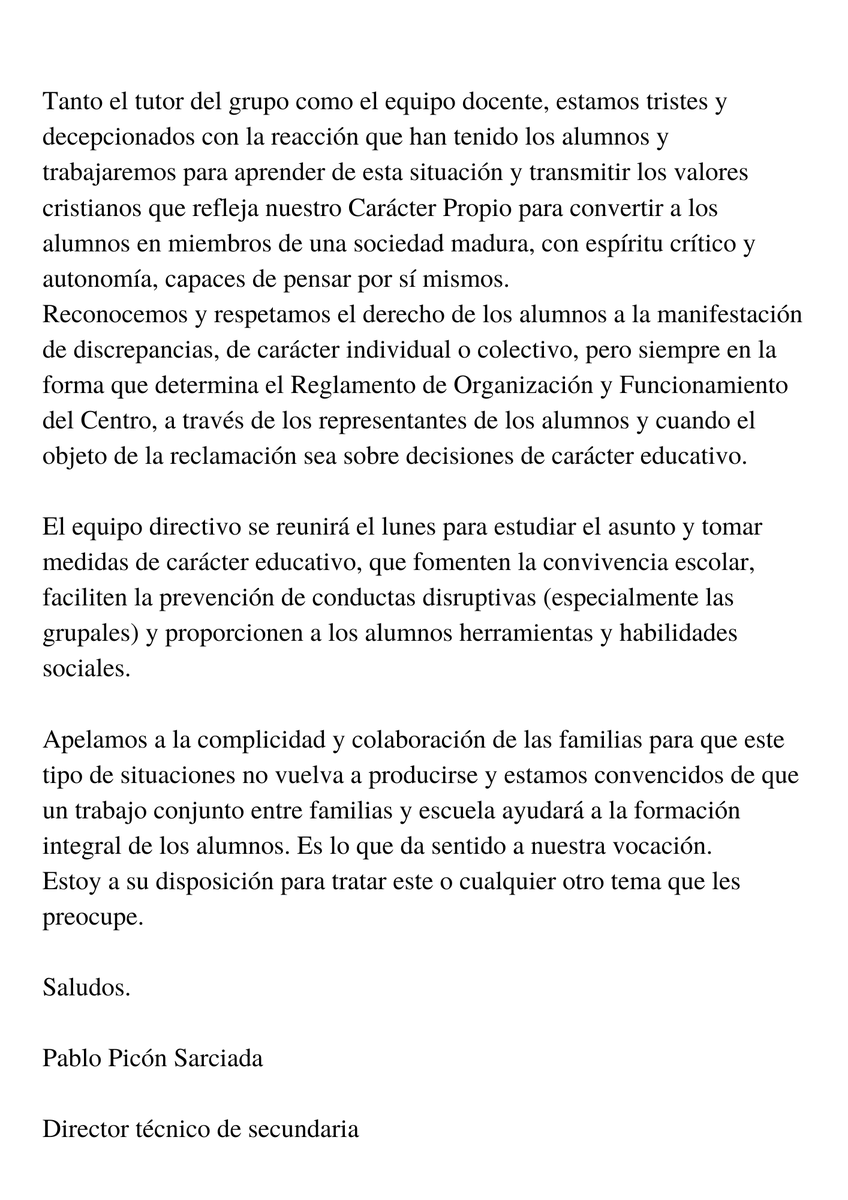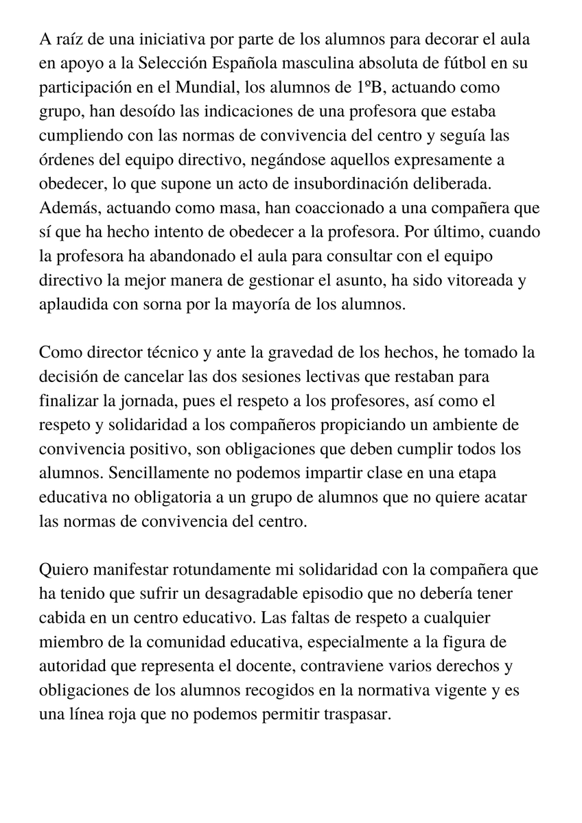 -Los alumnos de 1ºB de Bachillerato del Colegio La Salle en Palma querían colgar una bandera de España, según el alumnado para "Apoyar a la Selección en el mundial de #Qatar2022"