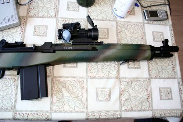 Chakal, lo prometido es deuda. Así ha quedado mi M14 después de pasar por el aerógrafo. Esperando con ansias estrenarlo en Monegros la semana que viene. Solo me jode llevarlo de serie cuando tengo todo el material para subirlo. Lo que pasa es que se ván a poner serios con el cronográfo y si me paso por un pelo de los 350fps igual me quedo sín jugar. Y eso como que no.