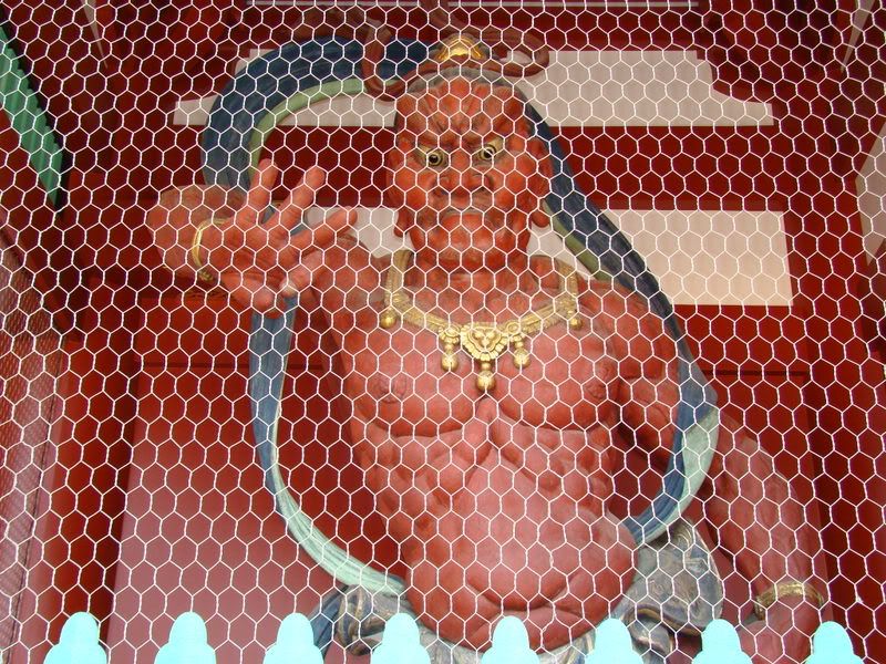Después de las compras , llegamos al templo principal, custodiando el templo hay estatuas de guerreros , al lado del principal hay varios templos y pagodas , en el interior hay una zona de oración donde la gente tira unas monedas y reza dando una palmada , todo esta muy adornado y en el techo hay unas pinturas espectaculares , en los alrededores del templo un pequeño jardín con su río , puentes y estatuas de buda y templos donde la gente se ponía a rezar.