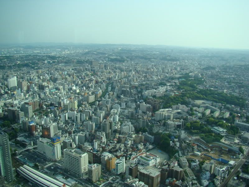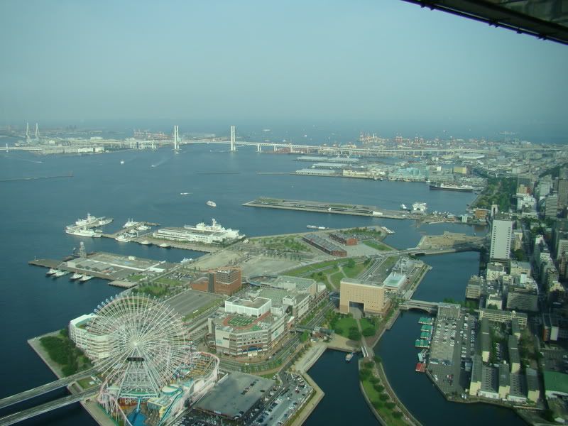 Tras las compras en la Book Off , partimos hacia el Land Mark en la ciudad de Yokohama , este edificio es el mas alto de Japón ( 275 metros ) y tiene el ascensor mas rápido del mundo , alcanza algo mas de 750 metros X min. , subir en este ascensor es toda una experiencia , pasar del nivel del mar a 275 metros de altura a toda velocidad es una sensación muy chunga sobre todo para los oídos , una vez arriba las vistas son increíbles la noria gigante que hay justo al lado ahora ya no es tan gigante, creo que en días despejados puede verse el monte Fuji , aunque no tuvimos esa suerte , después de disfrutar de las vistas y realizar algunas compras , decidimos bajar .