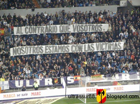 Es una pena que sean unos putos NAZIS los que den colorido al Bernabéu, como demuestran en su simbogía, en sus canticos, en sus frases, en sus banderas y con su asqueroso 88.