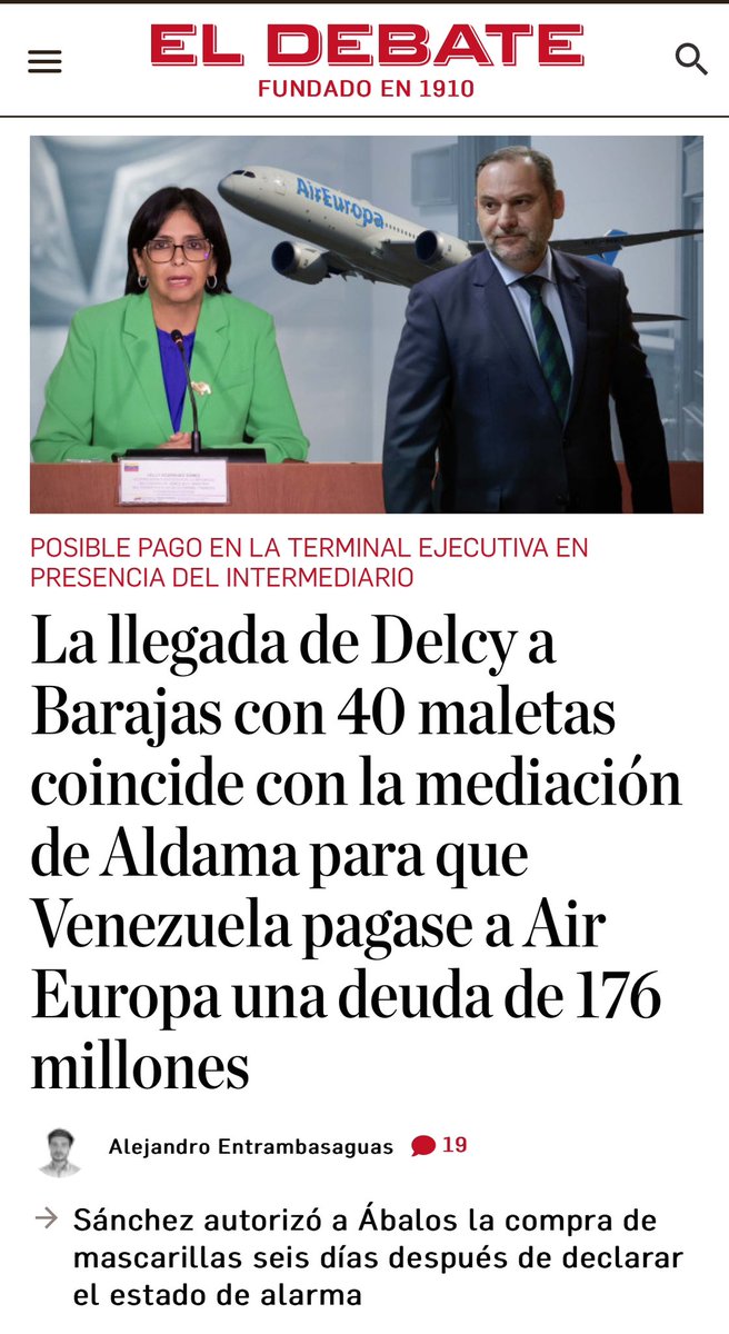 Todo un escándalo por el que habría caído cualquier gobierno. El presidente ya ha dado órdenes a Bolaños de que transmitan a los periodistas que Begoña es un «tema privado» del que no puede hablarse. ¿El tráfico de influencias, delito que está tipificado, es un «tema privado»? ¿Van a aclarar qué comisiones se han repartido y dónde? ¿Los viajes del Falcon a República Dominicana, donde reside José Hidalgo y tiene importantísimas propiedades, cree que va a ser un secreto de Estado?